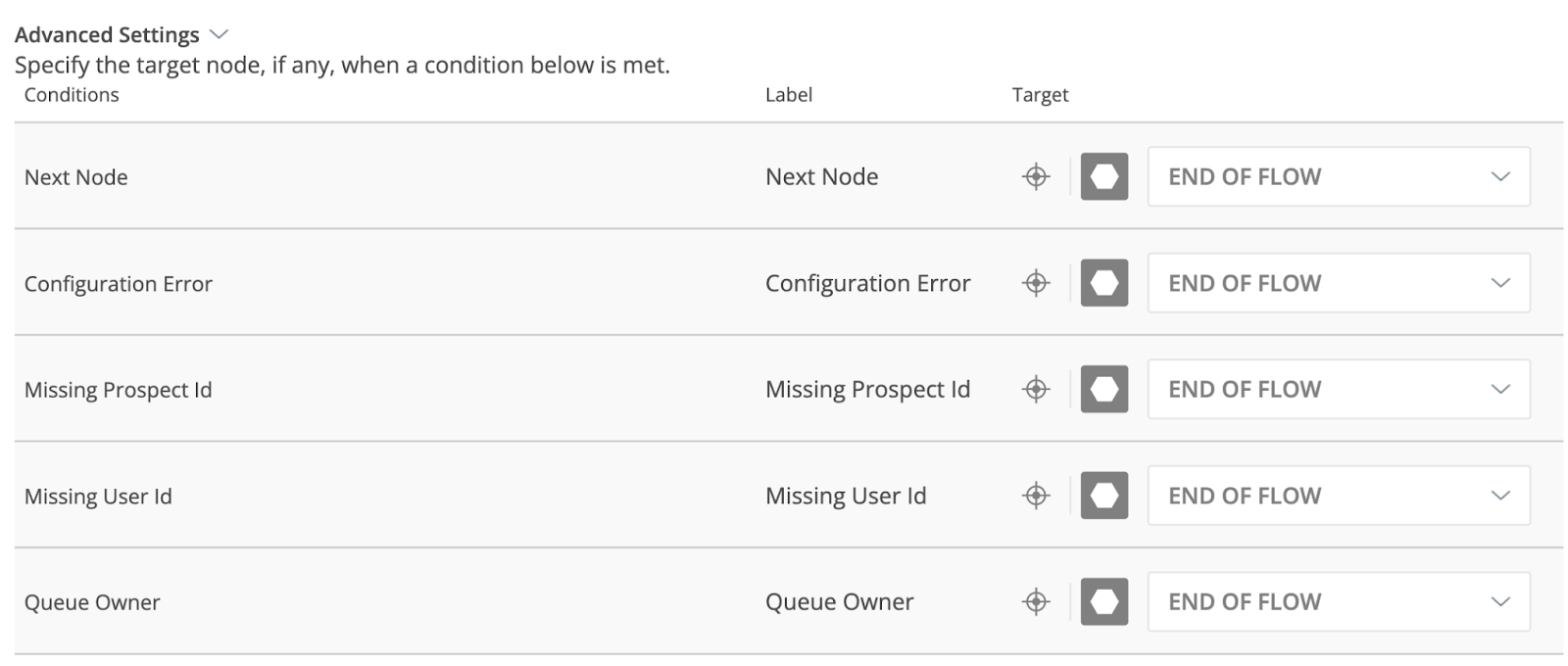 Edge Options: Users have the ability to choose the next node LeanData should move onto if there’s one of the below errors