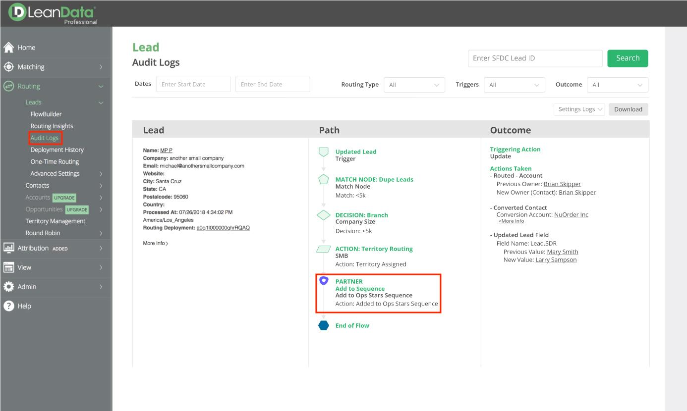 Outreach actions are included in LeanData Audit Logs