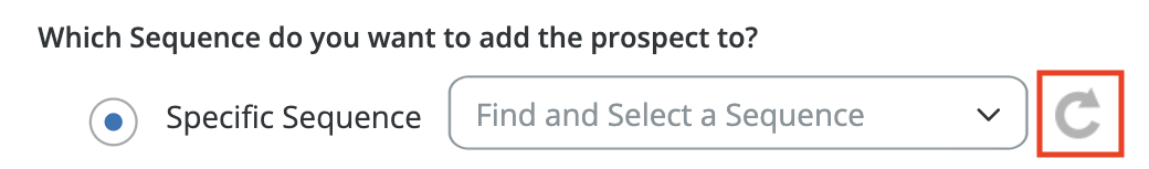 If you have recently added or updated your Sequences and they don't appear in the dropdown, click the circular refresh icon to sync your Sequences.