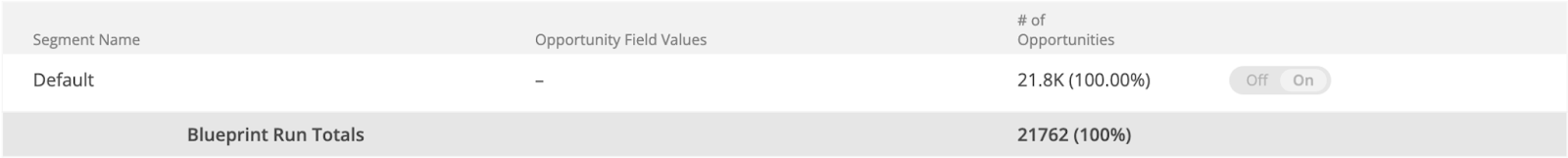 Opportunity Segmentation allows you to create different settings for distinct, mutually exclusive groups of Opportunities. The groups must be defined with one singular Opportunity field and the field type must a text string. Formula fields which output a string are also acceptable.