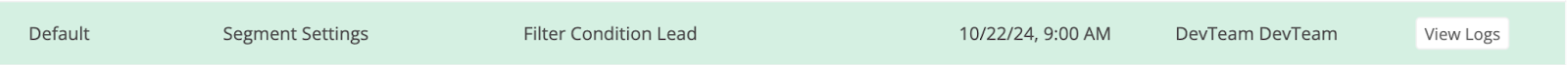 Holding the cursor over a log entry will highlight the row and a View Logs button will appear. Clicking on the View Logs button will display a page with more details about the changes.