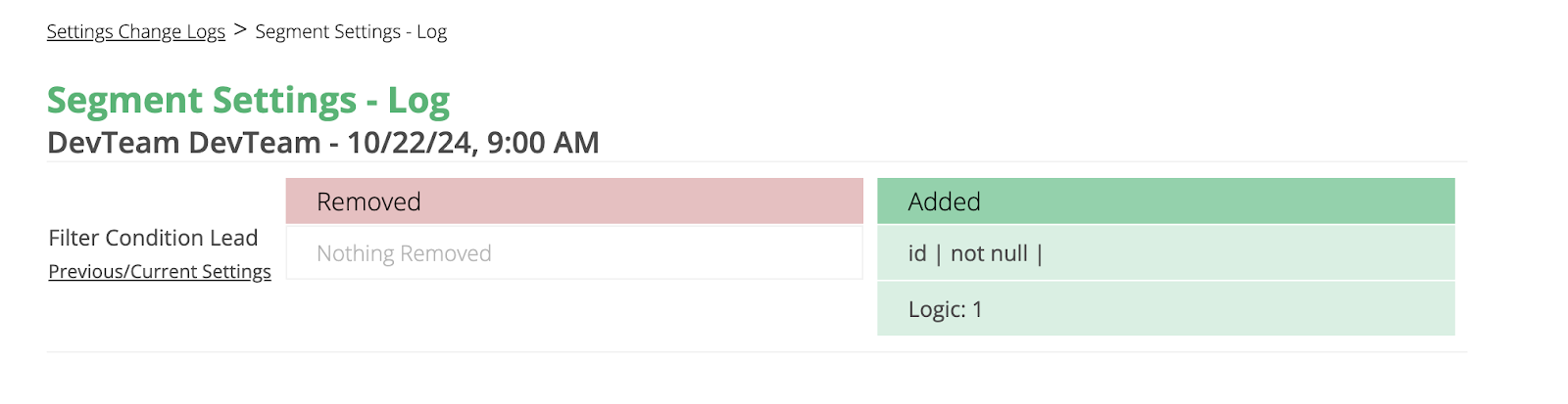 - Segment - The segment that had setting changes
