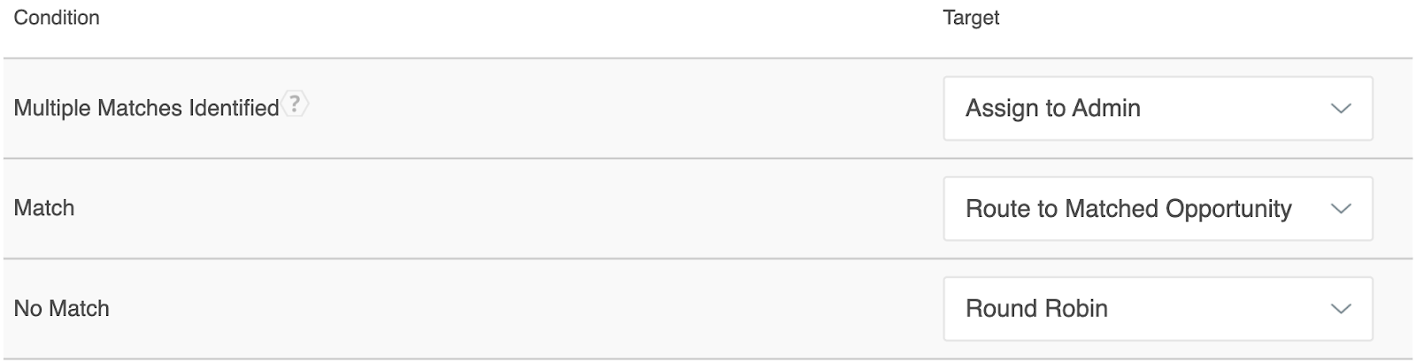 Please Note: This match node operates differently than the match nodes within Lead Router. The Account-to-Opportunity Node is only used in the Account Router and only identifies Opportunities under the Account being evaluated.