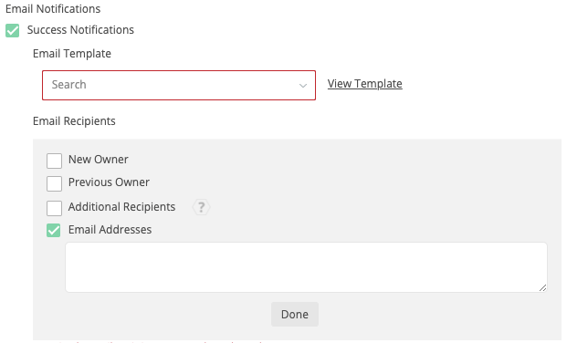 - Additional Recipients - This option lets you send the notification to a User on the Contact, on a matched Object, or on a created Object.