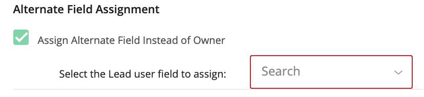 Please Note: In order to use the Alternate Field Assignment, you must select the person to populate the Alternate Field from the Lead Ownership settings.