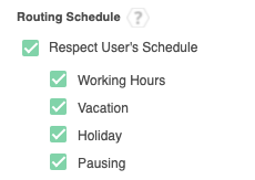 The Routing Schedule section gives you options on how to honor user schedules. You can configure each node to honor all schedule types or any combination as needed.