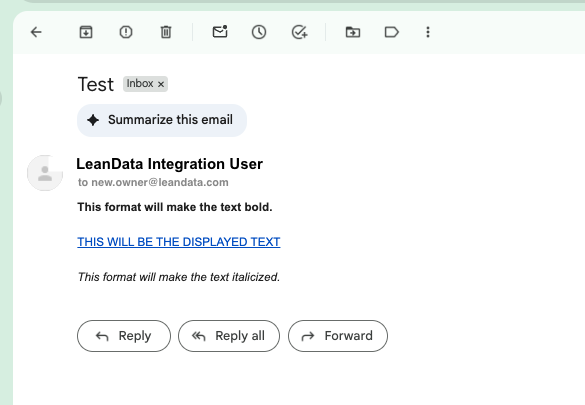 Within a Send Notification Node you are able to format in the email message using standard HTML.