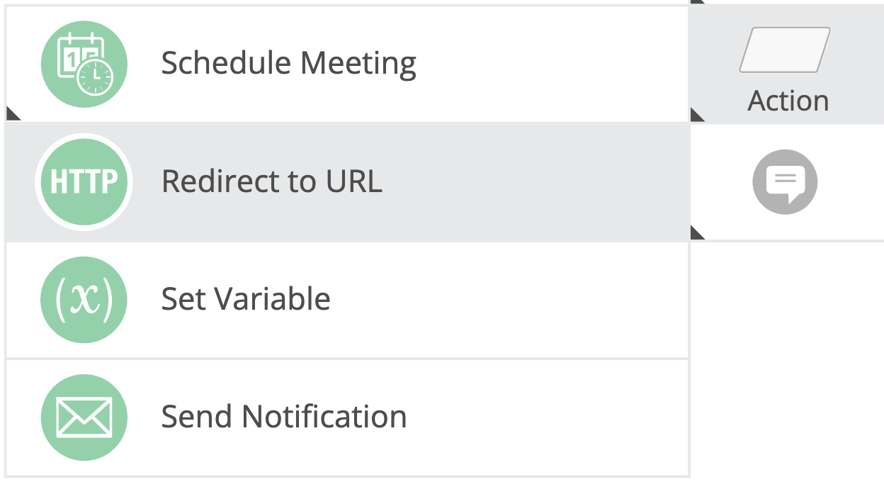 You will find the Redirect to URL node available in the Node Bar in the FlowBuilder for BookIt for Forms. Drag a Redirect to URL node into your active graph to begin configuration.